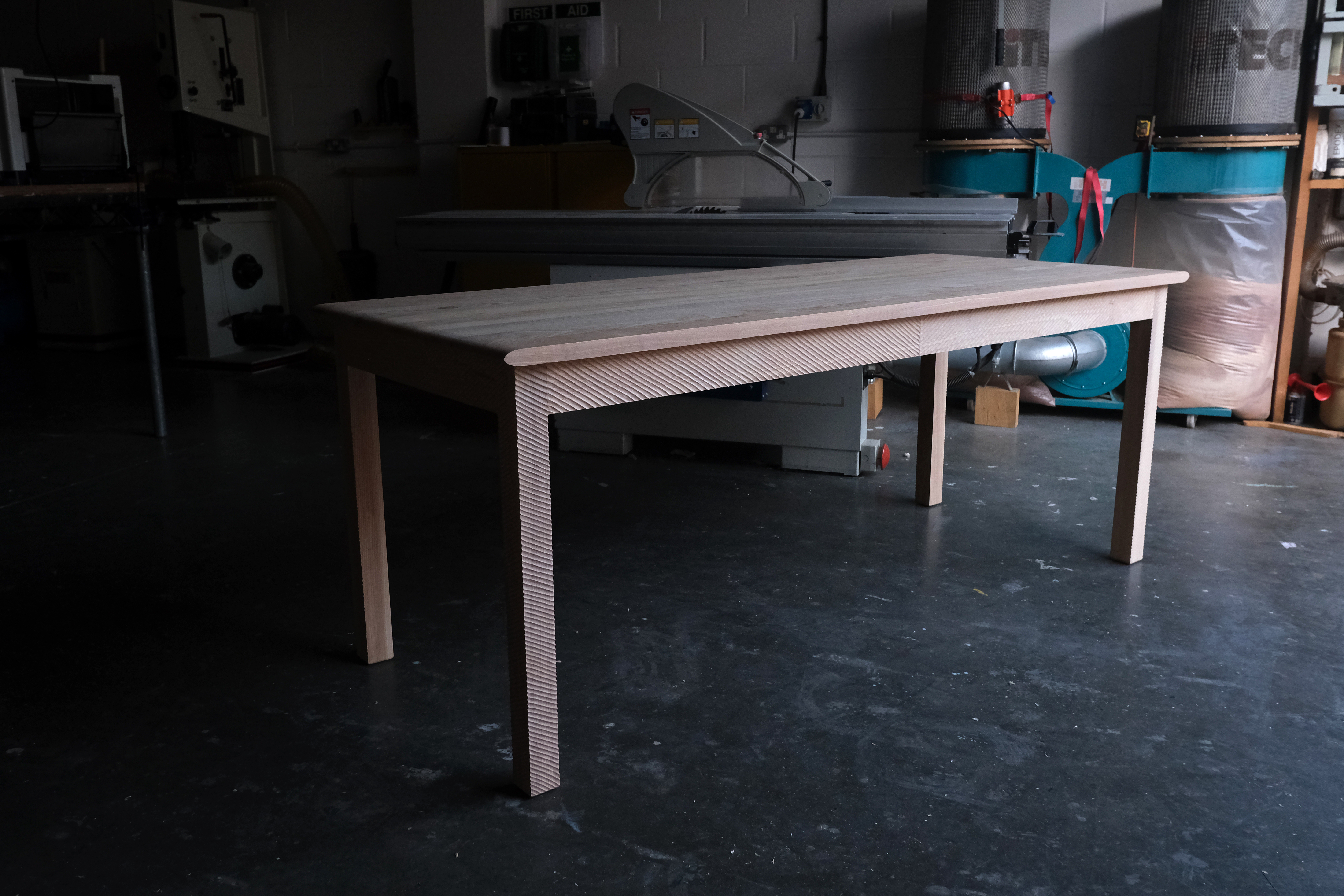 Ammonite is a dinning table made of solid ash timber. The legs and rails are all hand carved, evoking the ripples of an ammonite.
