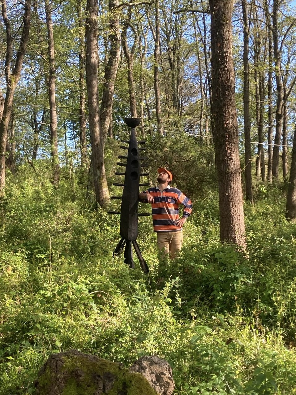 This work was created during the Cavanei Cavanei art residency, organised by APUA. It reflects on the dual role of death, both as an end and as a creator of life, an essential force for sustaining life in a constantly changing world. Along the stem of the sculpture there are three wombs, small clay coins decorated with micobial forms. At the top there is a chalice filled with seeds.