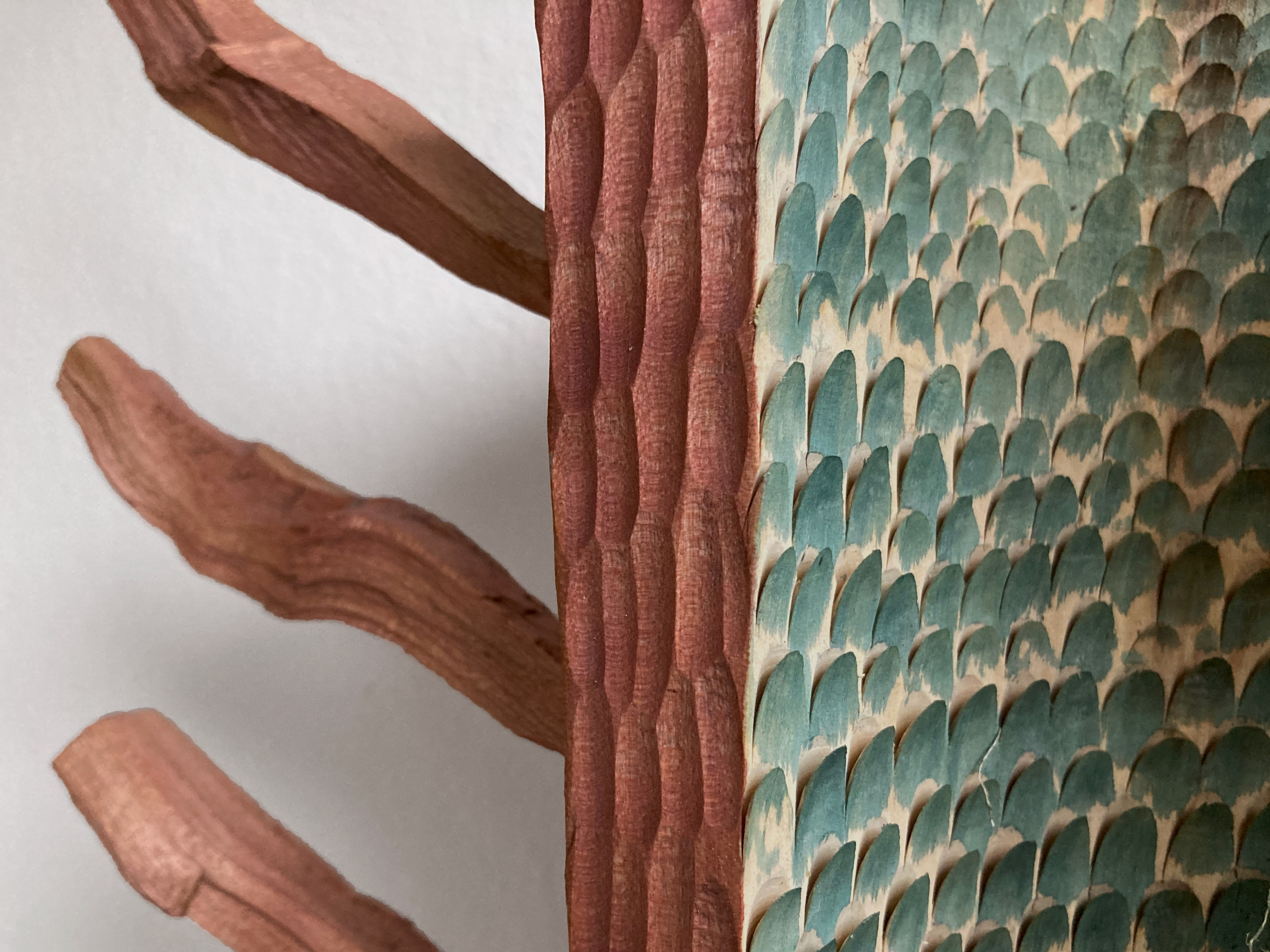 Sycamore wood, lichens, dyes, clay, sunflower seeds, volcanic rock