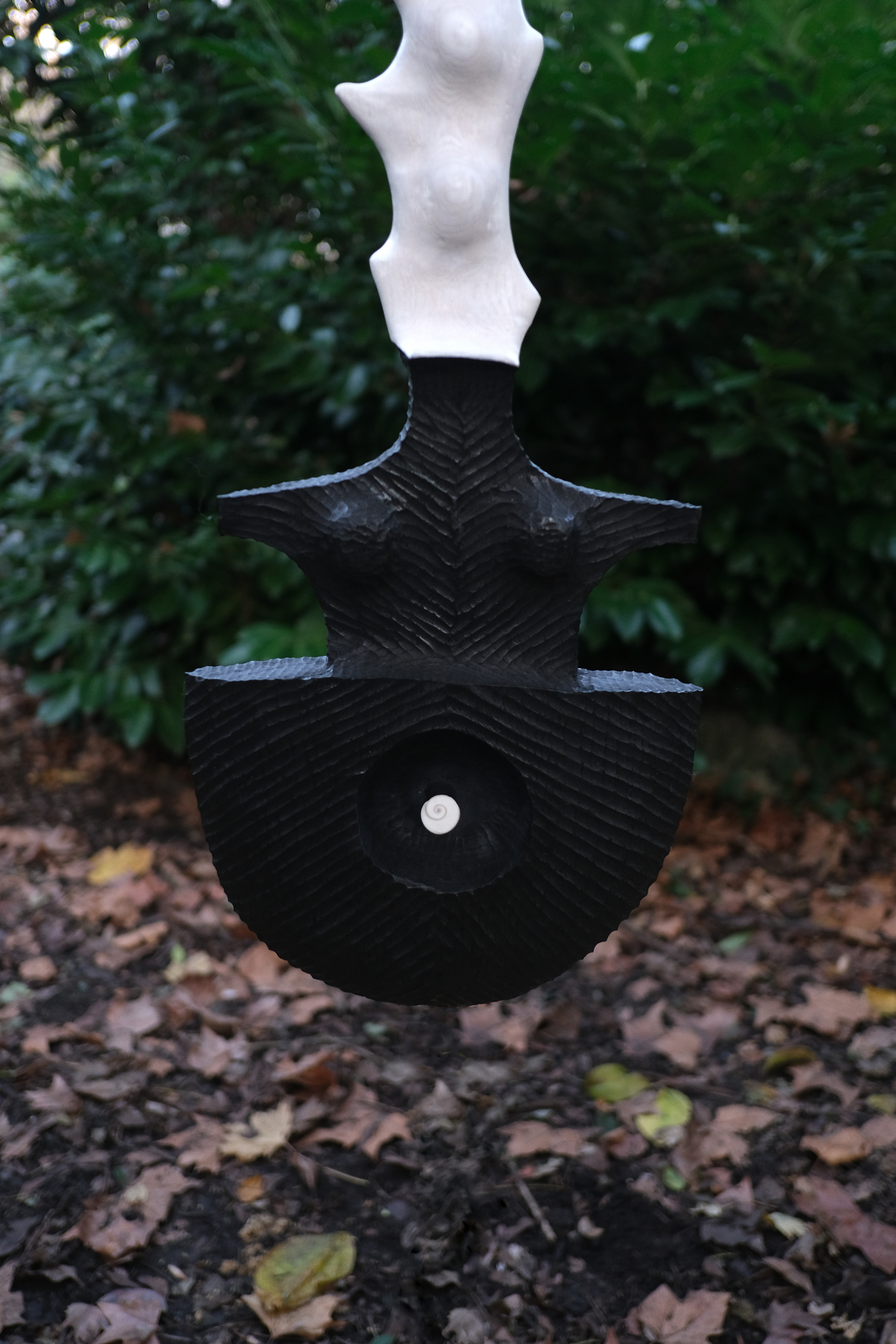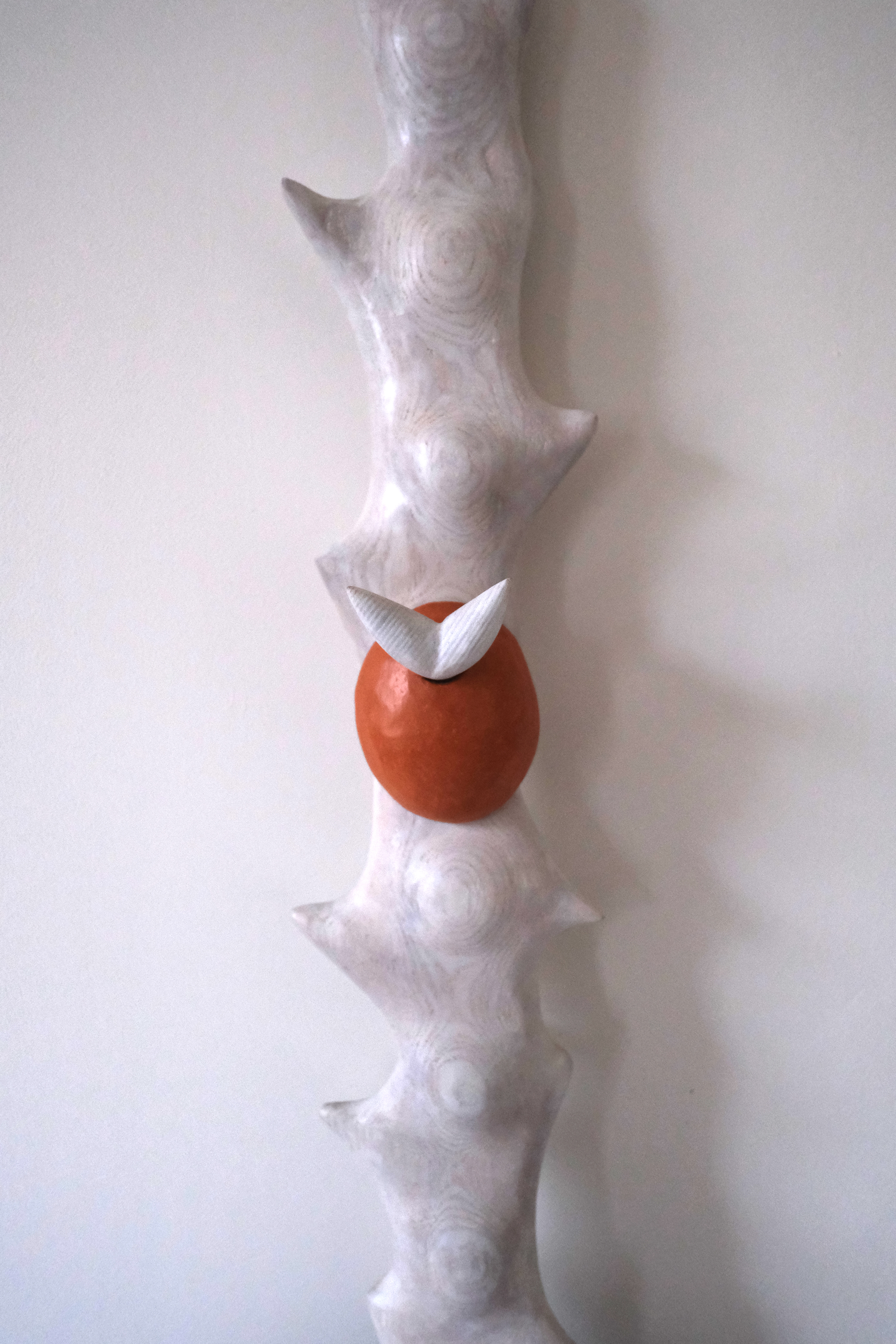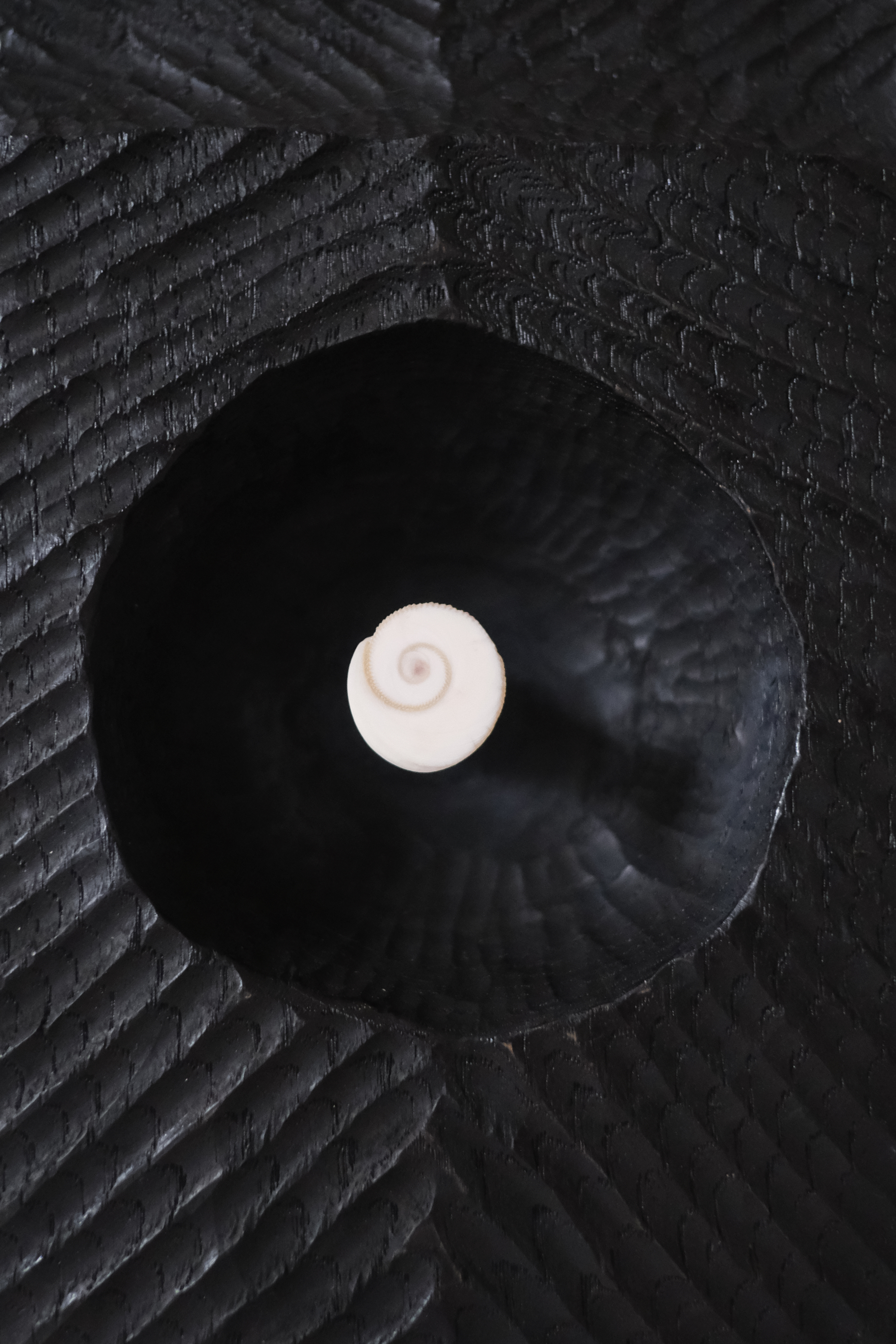 Ash wood, seashell, ceramic, indian ink, wood stain